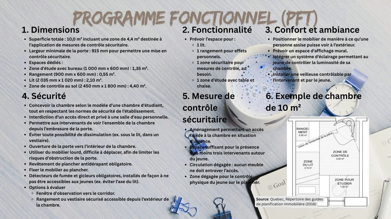 Répertoire des guides de planification immobilière - Centre de réadaptation pour les jeunes en difficulté d'adaptation (CRJDA) - Unité de réadaptation en internat, https://publications.msss.gouv.qc.ca/msss/fichiers/2015/15-610-08W.pdf